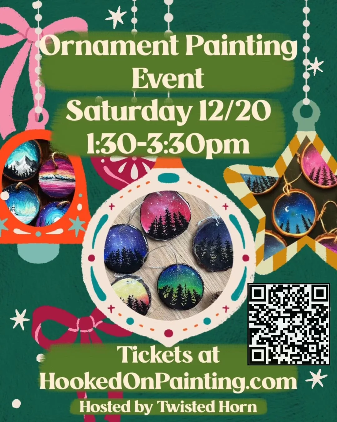 Event Description: Greetings and Salutations to you all. Steph from Hooked on Painting will be back and hosting our next “Paint and Sip” Holiday Ornament Craft Event on December 20th. Don’t miss this once in a lifetime opportunity to create something special and personal to adorn your tree or home with. So, put your “crafty hat” on, go to hookedonpainting.com then click on “Upcoming Events” to order your ticket(s) and reserve your spot(s). Tickets are limited, so don’t miss out. SKÅL!!!